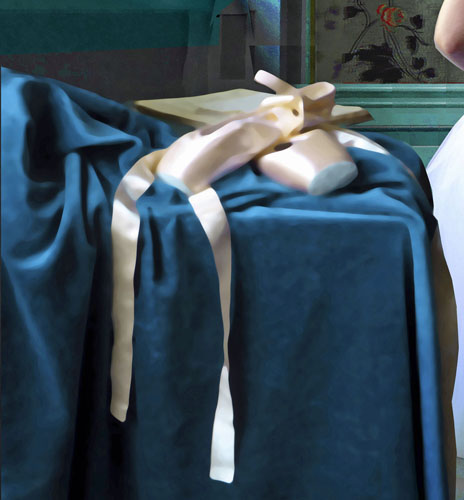 Vermeer schildert zijn mooie jonge vrouw als een juweel. Hij is een “vrouwenschilder” die zijn vrouw als model graag op een voetstuk zet. Hij schildert haar hier staand en een beetje van onderaf gezien. Haar gestalte krijgt hierdoor een subtiele monumentale, verheven uitstraling, zoals in het hierboven afgebeelde Parelsnoer in Berlijn. In het klassieke ballet van het Zwanenmeer is de iconische “lift” ook een ode aan de schoonheid en gratie van de vrouw. Een mooie jonge danseres wordt door de man tussen het corps de ballet van andere ballerina’s hoog opgetild als een juweel, als een parel. Klassieke kunst streeft naar een Platonisch ideaalbeeld. De een ziet dat ideaalbeeld als onderdrukking van de vrouw, de ander juist als verheerlijking van de vrouw. Als Vermeerliefhebber behoor ik absoluut tot de laatste categorie……
