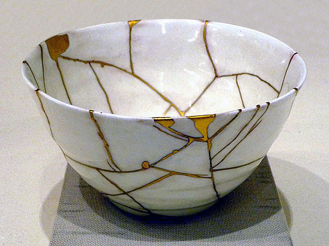 Dit Japanse idee komt het mooist tot uitdrukking in de met goud opgevulde barsten in een Kintsugi-aardewerk kom. Dit gegeven doet me ook denken aan die zin van Leonard Cohen: “There’s a crack, a crack in everything. That’s where the light gets in”. Leonard Cohen verbleef lange tijd in een Zen klooster, Mount Baldy Zen Centre bij Los Angeles, bij de Japanse Zen meester Sasaki Roshi.