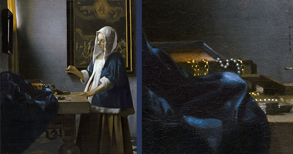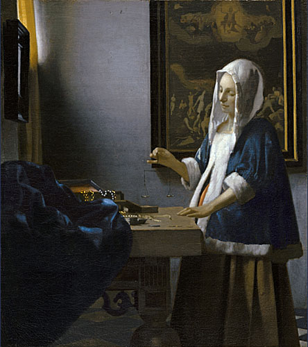 In de “Woman Holding a Balance” staat het juwelenkistje met de parels in symbolische dialoog met het schilderij met Het Laatste Oordeel op de achtergrond. Het gaat hier om het vinden van de juiste balans tussen wereldse rijkdom en een godvruchtig leven.