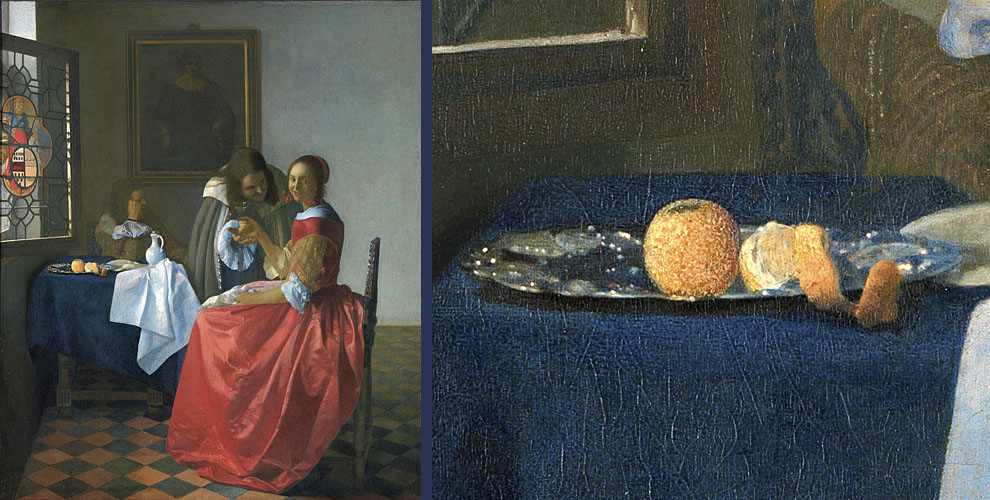 Vermeer – Het Glas Wijn (detail) uit Berlijn, 1660.