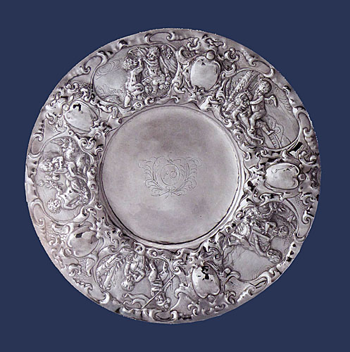 Zilveren Schaal met de Vijf Zintuigen, Philips Luyda, zilversmid, 1668, Delft, Museum Het Prinsenhof, Delft.