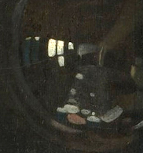 In de weerspiegeling in de glazen bol op de Allegorie van het Geloof zijn