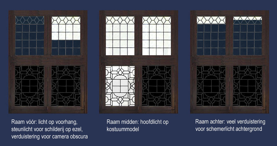 meerdere ramen aangebracht worden, waardoor de clair-obscur licht-