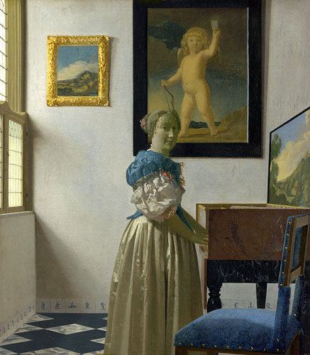 “van boven” komt. De Staande Clavecimbelspeelster in Londen baadt in vol