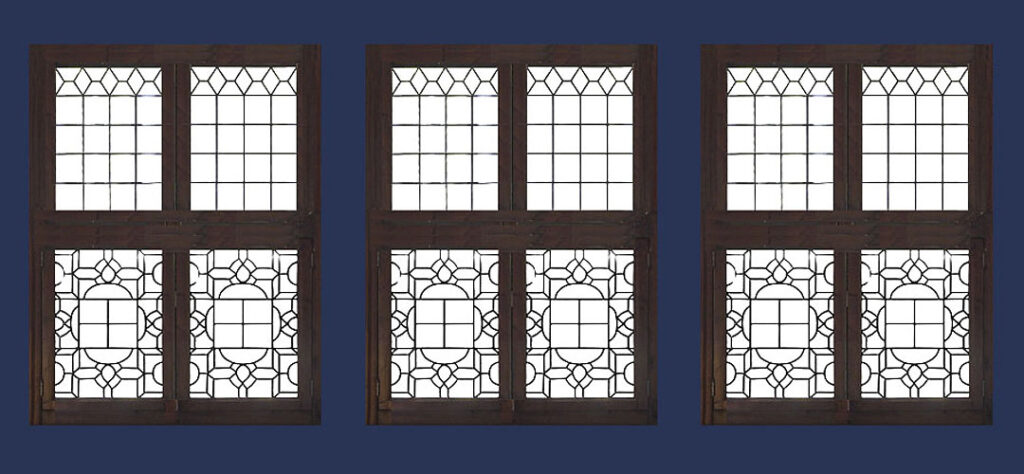 patroon in de onderste raampanelen geeft de uitstraling van het rijke
