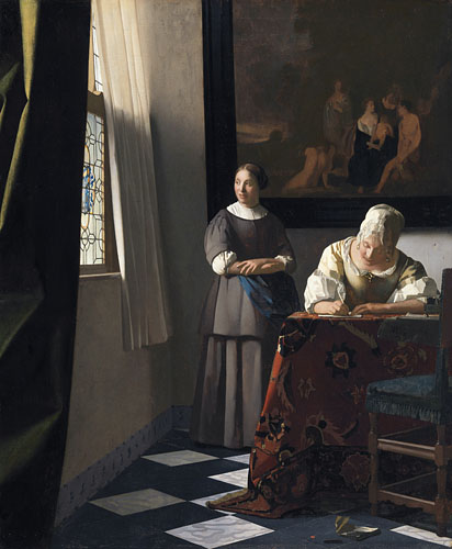 Vermeer’s Lady Writing a Letter with her Maid in Dublin, met een donker-