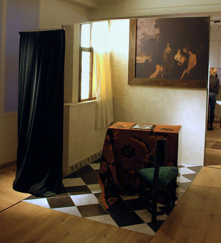 achterwand met het Kruisiging-schilderij in het schilderij en is tevens