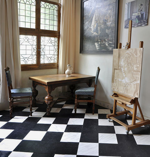 de plek waar de schilder Vermeer zat in zijn “licht-laboratorium”. In al