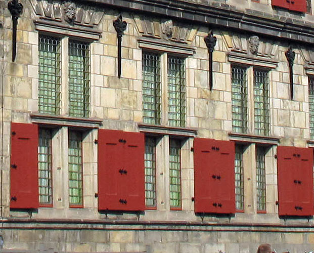 ramen in de buitengevel van het stadhuis in Delft, waar Vermeer ove-