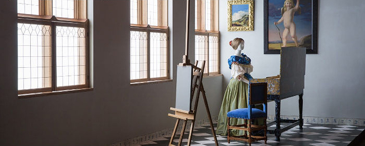 Vermeer’s atelier opsteekt en zo het atelier in het licht zet, te