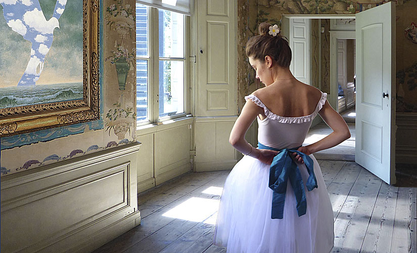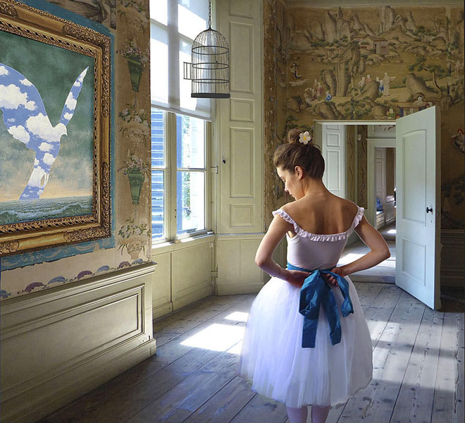 Fotomontage: een beetje Vermeer-licht en een vleugje Degas in de “Chinese Kamer” in landhuis Oud Amelisweerd…… Het schilderij is uiteraard “La Grande Famille” van de grote surrealist René Magritte.