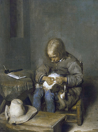 Gerard Ter Borch, Boy Ridding his Dog of Fleas, 1665, Alte Pinakothek, München